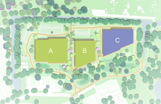 Voor de ontwikkeling van het derde en hoogste woonblok (C) gaat de gemeente op zoek naar een marktpartij.